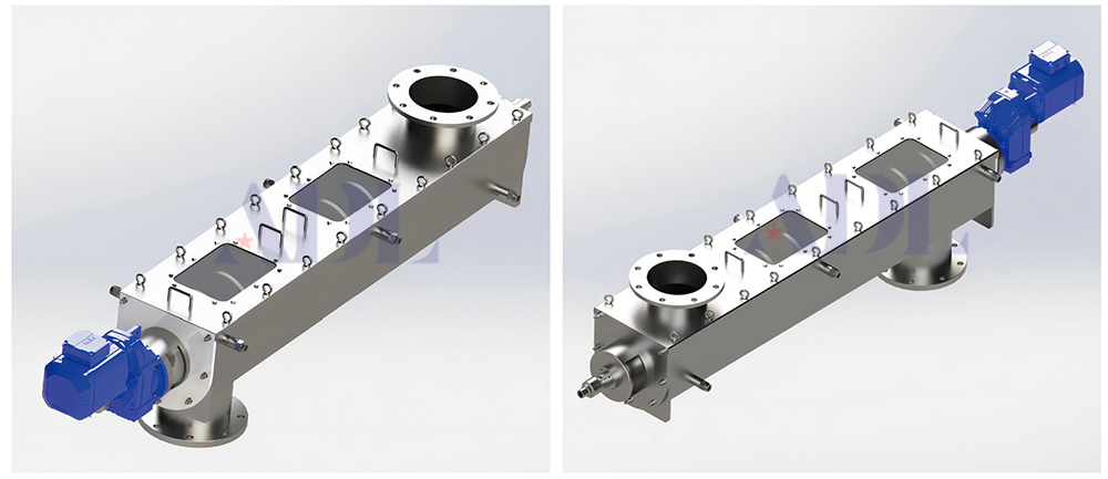 水冷內螺旋保送機包含進料單位、出料單位、筒體、冷卻單位、驅動單位和支持單位,進料單位和放料公司的分